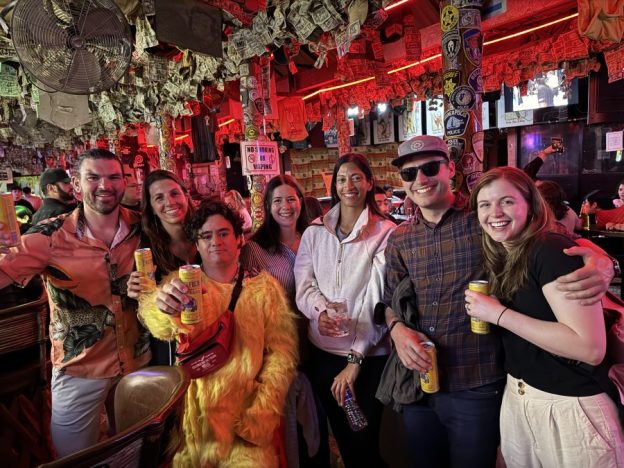 Note that this very much depends on where you’re doing your chicken chase, but a good estimate is 40 minutes per bar, which includes roughly 10 minutes for walking to the bar and 30 minutes to have a drink. Adjust if bars are closer together, if you think the group will move faster or slower, or if you expect it will take longer at each bar.